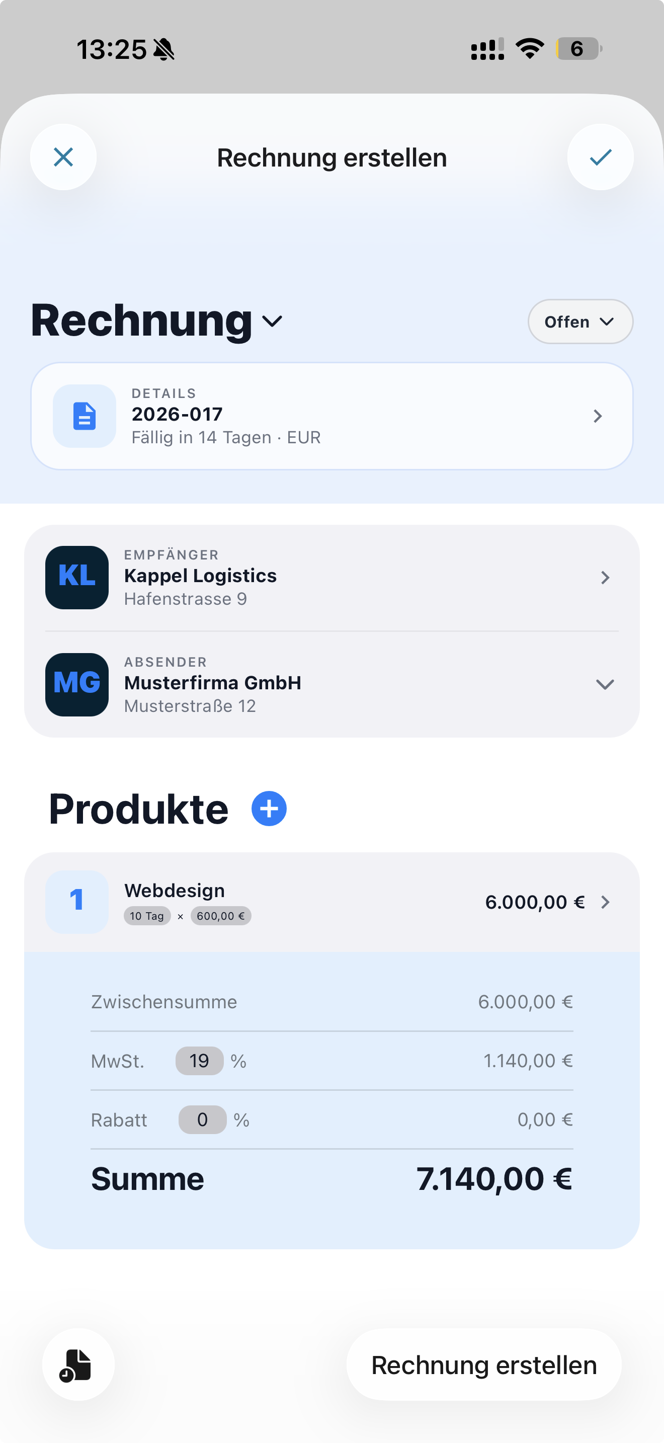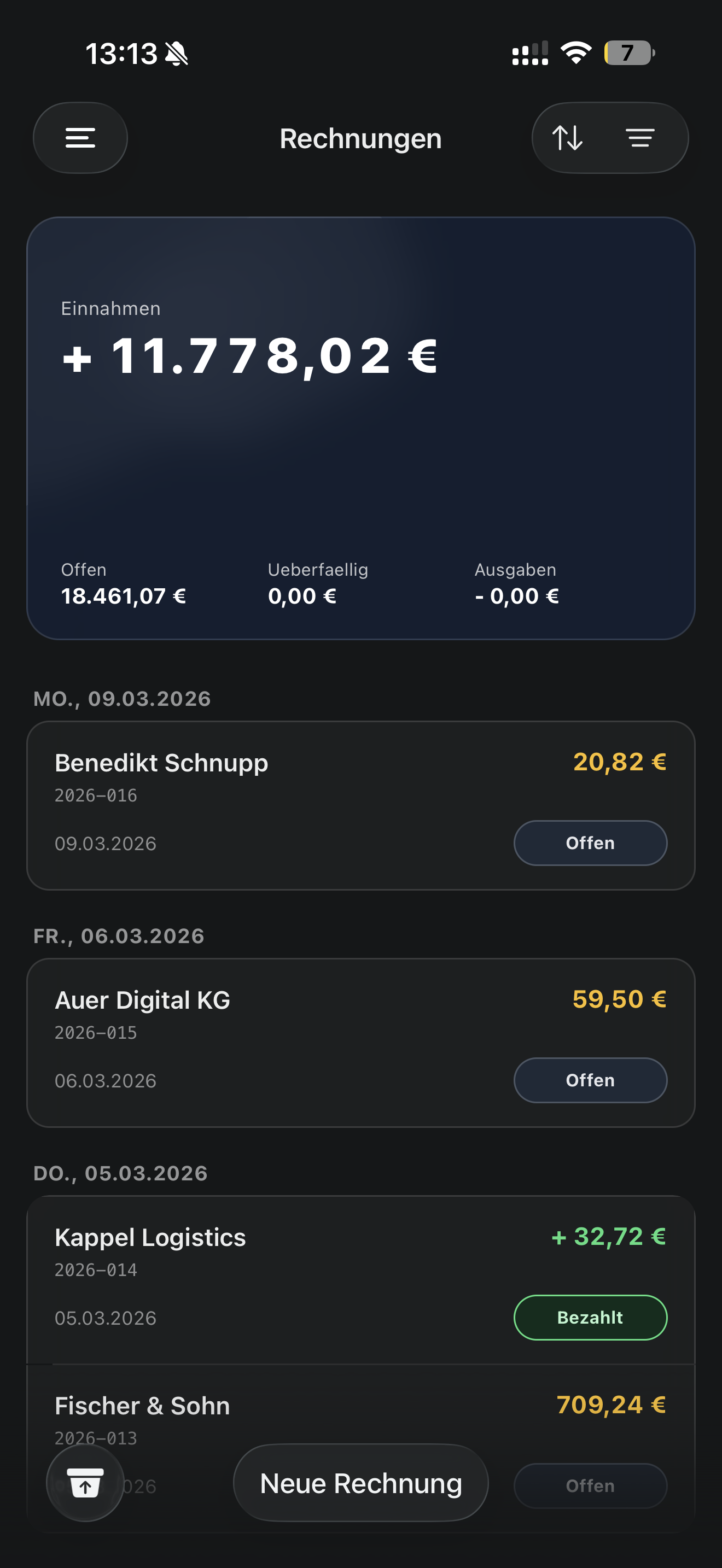 With Rechnungen+, an error-prone form process became a reliable mobile workflow, ready for export in minutes.