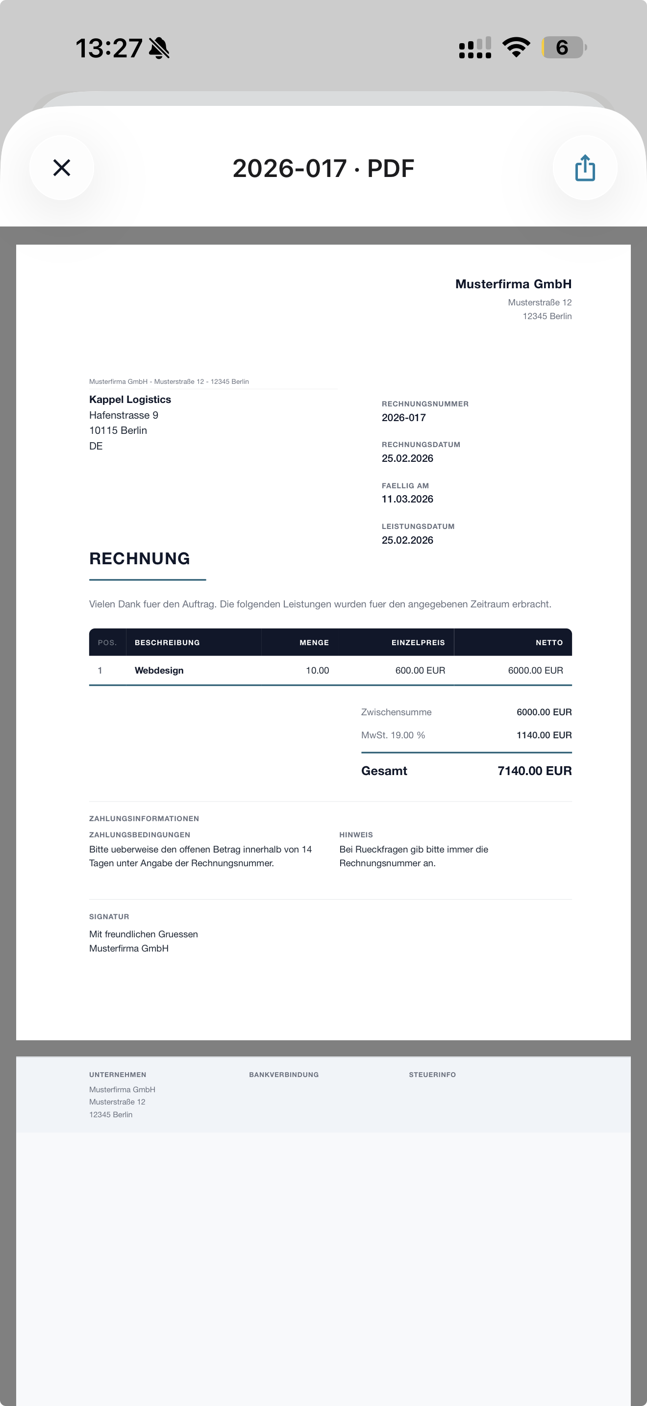 With Rechnungen+, an error-prone form process became a reliable mobile workflow, ready for export in minutes.