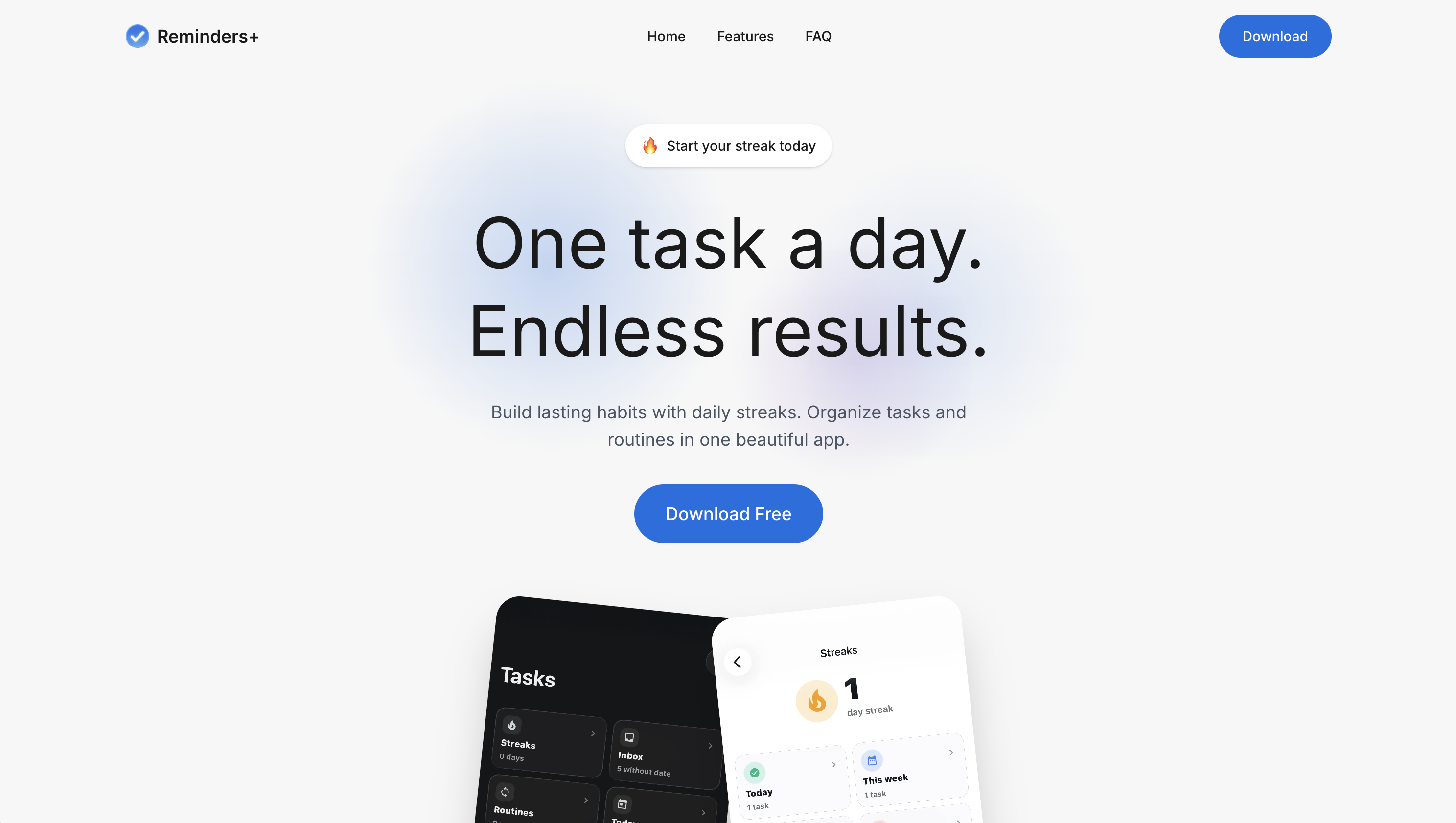 Reminders+ is my attempt to fix that with one simple rule: do at least one thing every day — and let the streak do the heavy lifting. It’s a clean, fast, local-first iOS app we designed together with Max Möckel and built in React Native. App Store